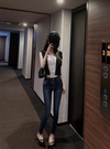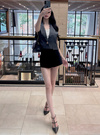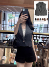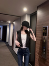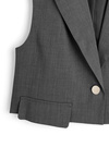 テーラードカラーやフェイクポケットがきちん感を添えてくれるジレ。フロントに添えられたゴールドボタンがさり気ないアクセント。
