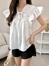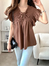 前後2wayシャーリングレースアップフリルブラウスの商品詳細情報のページです。