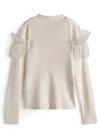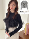 異素材をドッキングして立体的に仕上げたデザインニット。軽やかなチュールのボリュームと、柔らかなニット素材のコントラストが魅力。