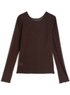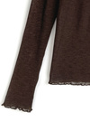 透け感のある軽やかな風合いのシアーカーディガン。袖口や裾のメロウフリルが女性らしい印象を与えるポイント。