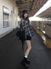 エアリーなシアー素材にチェック柄をのせた薄手のチュニック。ほんのり肌感が伝わる透け具合が女性らしさを引き立てるポイント。
