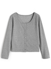 ベーシックデザインのカーディガンとキャミソールのアンサンブル。ラメ入りで動くたびにほんのりきらめく、上品なラウンドネックのリブカーディガン。
