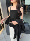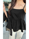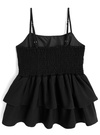 さらさらとした麻調の生地を使用した軽やかな着心地のキャミトップス。ふわっと広がる2段のティアードフリルが女性らしい揺れ感をメイク。