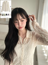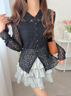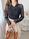 繊細なレース素材で仕立てた、女性らしさを引き立てるトップス。ベーシックなシャツデザインで甘さを抑えた大人っぽい雰囲気。