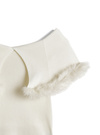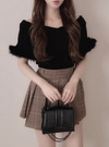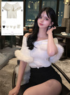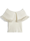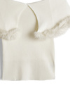 存在感のあるビッグカラーにふわふわのファーをあしらい、華やかに仕上げたノースリトップス。体にフィットしたコンパクトなシルエットで女っぽいボディラインを演出。
