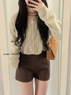 シャギーニットの中に繊細なラメが煌めく質感が特徴的なカーディガン。短丈なので着ると重心がアップし、スタイルアップにも貢献。
