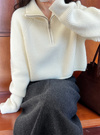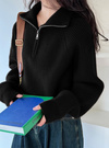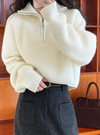 ハーフジップ仕様がポイントとなり、閉めたら首元までしっかりとホールドされ暖かさ◎。