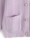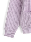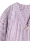 細かいウェーブ状の編み柄が特徴的な立体感のあるニットカーディガン。フロントに並べた大ぶりのパールボタンが華やかなアクセント。