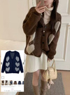 クラシカルなアーガイル柄をハート型で表現したフェミニンさ漂うカーディガン。配色デザインで存在感があり、コーディネートのアクセントになるアイテム。