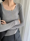 すっきりとしたUネックが抜け感のある洗練された印象に。