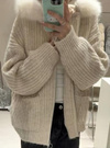 ざっくりと編まれたローゲージのニットパーカーが登場。フードにふわふわのエコファーをドッキングしたボリューミーなルックスがお気に入り。