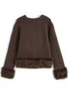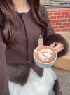 ベーシックなカーディガンに毛足の長いエコファーをドッキングしたアイテム。