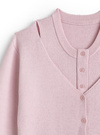 カーディガンとタンクトップを重ね着したようなユニークなデザイントップス。軽くてドライタッチな風合いのニット生地を使用しており快適な着用感。