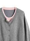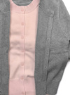 なめらかな肌触りのニット素材で仕立てたカーディガン。チラリと覗く配色リブが、重ね着したように見えるデザイン。