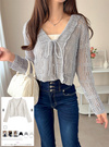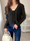リボンフリル透かし編みニットカーディガンの商品詳細情報のページです。