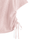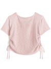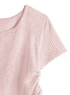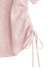 両サイドにはドロストリボンをあしらうことで、ウエストラインの細見え効果も期待できる。