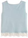 ベーシックなノースリトップスに異素材ドッキングを加えたアイテム。上品なレース生地を裾にあしらい、フェミニンなニュアンスをプラス。