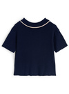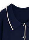 配色ラインでアクセントを効かせた、きちんと感のある襟付きトップス。
