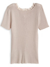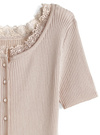 ネックラインには繊細なレースをあしらい、顔まわりを華やかに演出。