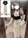 重ね着したようなデザインが魅力の、レイヤード風ドッキングワンピース。