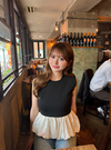 お手持ちのベーシックボトムと合わせるだけで、大人フェミニンなルックの完成。