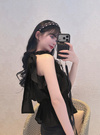 バックネックにリボンを添えることで、後ろ姿まで華やかに演出。