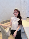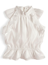 上品なシアー素材で仕立てた大人フェミニンな印象を与えるブラウス。肩をきれいに見せるアメリカンスリーブは涼しげで女性らしさたっぷり。