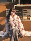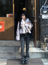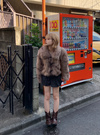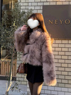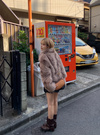 ニュアンスのあるミックスカラーのエコファーがこなれた印象を与えるコート。ボリュームたっぷりで暖かく、スタイリングに華やかさをプラスしてくれる。