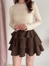 ティアードさせたフリルが歩く度に揺れ動き、女性らしさを際立たせる。