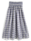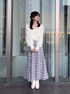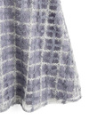 オーガンジー調素材にフェザーやフィルム糸などをミックスした、立体感溢れるチェック柄スカート。動くたびにキラキラときらめき、上品で優雅な印象を与えてくれる。