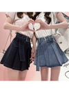 インパン裏地ベルト付きプリーツデニムスカートの商品詳細情報のページです。