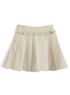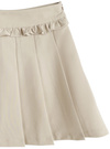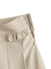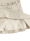 幅広のきちんと感があるプリーツに、小ぶりなフリルで愛嬌をプラス。ウエスト回りはフラットにしているのでヒップ周りも膨れずきれいなシルエットに。