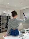 トップスは短丈やインスタイルにして、リボンが目立つコーデがおすすめ。