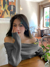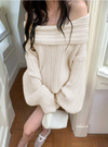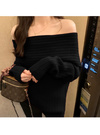 折り返しデザインが目を惹く、フェミニンなオフショルニットワンピース。鎖骨や肩のラインを美しく見せ、女性らしい魅力を引き立てる。