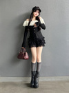 立体感溢れる異素材フリルが目を惹く、フェミニンなオフショルトップス。