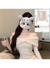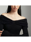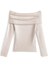 シャギーリボンカラーオフショルダーニットトップス[at2606]