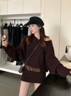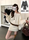 ベルト付きワンショルダーニットミニワンピース[at2608]