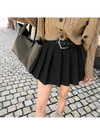 インパン裏地・ベルト付きプリーツミニスカート[at2618]