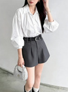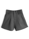 タックを効かせた立体的なフォルムが女性らしさを引き立てるショートパンツ。さらっとした質感の生地を使用しているため、オールシーズン着回せるのが魅力。