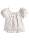 ふんわりふくらんだパフスリーブは、オフショルにもできる2Way仕様。
