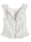 オフショルダーフリルリボンダブルジップトップス[at2657]