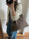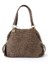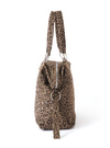 コーディネートの主役になるヒョウ柄プリントのボストンバッグが登場。フロントのスタッズデザインがクールでエッジの効いたアクセントに。