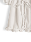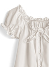 胸元のリボンやさりげないパフスリーブも愛らしさ漂うポイント。