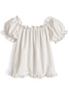 ギャザーをたっぷりと寄せてガーリーな雰囲気に仕上げたブラウス。