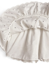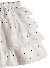 程よくハリ感のあるドット柄生地で仕立てたガーリーなティアードスカート。ボリュームたっぷりの4段フリルにレースをあしらい甘さたっぷりな雰囲気。
