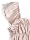上品な光沢感のサテン生地が目を惹く、大人フェミニンなキャミトップス。くしゅくしゅっとシャーリングをたっぷり効かせた立体感のあるフォルムがポイント。
