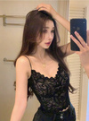 華やかで立体感のある刺繍レースを施した上品なキャミソール。フェイクスキン生地を重ねることで、まるで素肌が透けているように見えるこだわりデザイン。