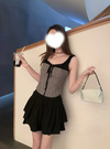 胸元にトッピングした華奢なリボンも甘さを添えるアクセント。