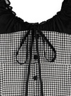 クラシカルガーリーな雰囲気漂う、細かいギンガムチェック柄のトップス。デコルテ周りがほんのり透ける、シアー素材の切り替えデザインがお気に入り。