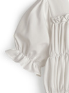 ふっくらとしたスリーブやウエストからひらっと広がったフレアラインも女性らしさたっぷり。